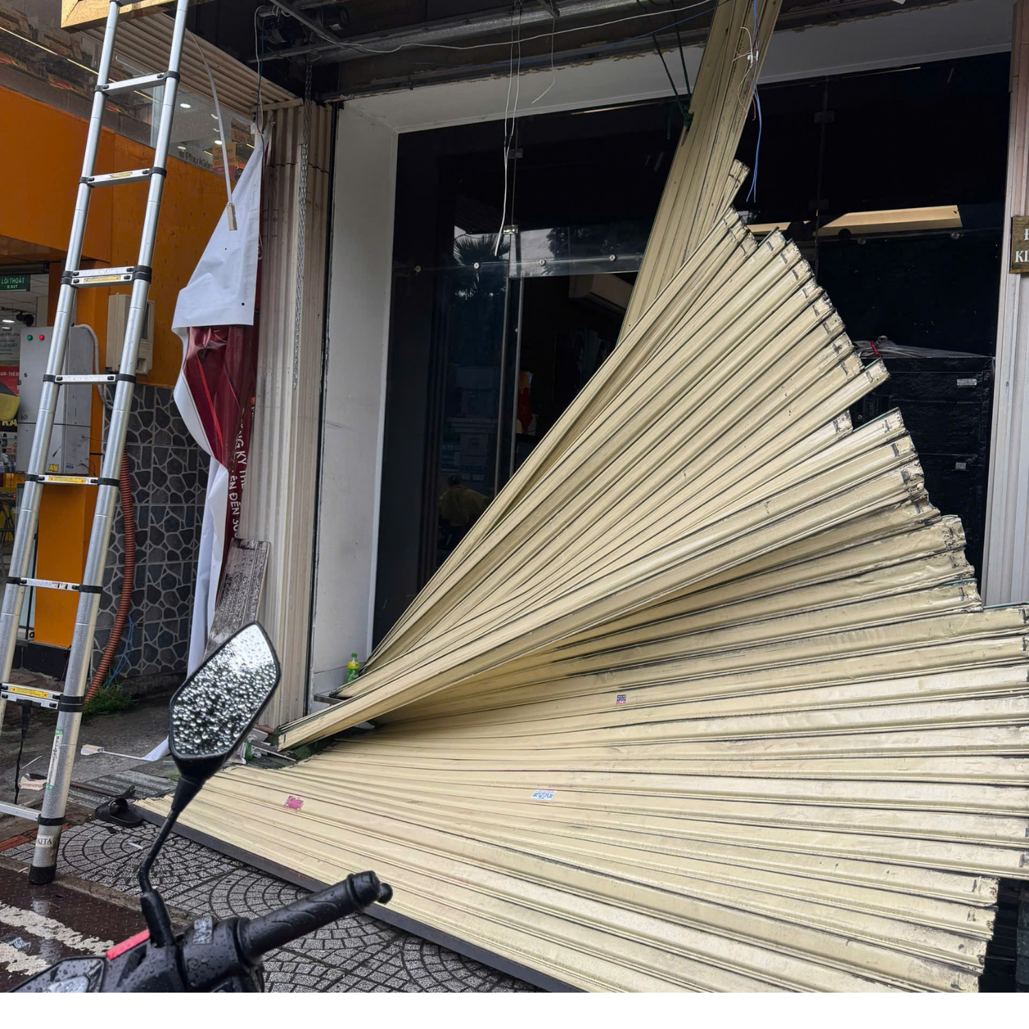 - Thanh đáy cửa cuốn bị móp méo, rơi ra khỏi ray