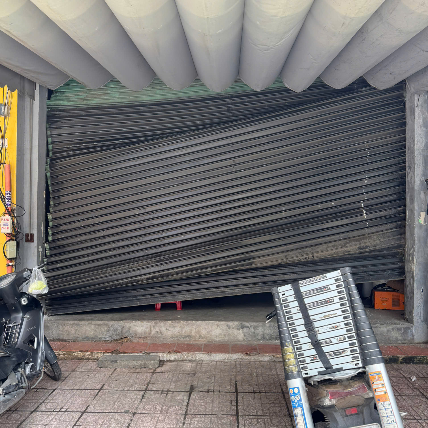 - Thanh đáy cửa cuốn bị móp méo, rơi ra khỏi ray